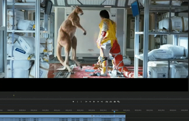 **這麼兇猛的袋鼠,踹一腳到底有多大的力量呢?**我在預告片裏找到了剛子踢飛沈騰的片段,將視頻拖進Pr逐幀觀察: