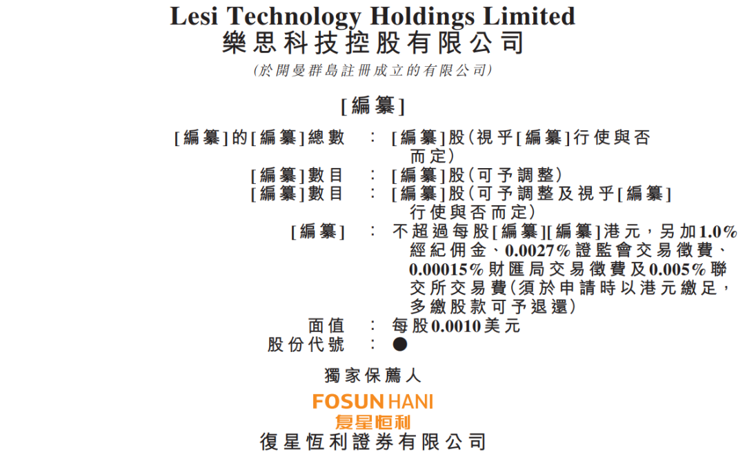 港交所近日披露,樂思科技遞表港交所主板申請上市,復星恆利為獨家保薦人。
