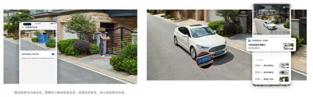 萬物互聯的智能時代,連接是基礎,智慧是核心。基於華為和小豚當家在人工智能領域的研究成果,為這台智能攝像頭配備了一顆“更聰明的智慧大腦”。 在攝像頭的視野範圍內,支持在智慧生活App上自主劃定重點看護區域和警戒線,當看護區域內有異常或有人越過自定義電子警戒線時,攝像頭將發送信息到主人手機。同時,為了有效減少風吹、光線變化等因素引發的誤報,華為智選小豚當家室外攝像頭還內置強大的圖像處理芯片,可進行復雜的人形智能偵測。在強大的AI算法下,能更快、更精準感知人形、識別車輛的經過和看清車牌號。