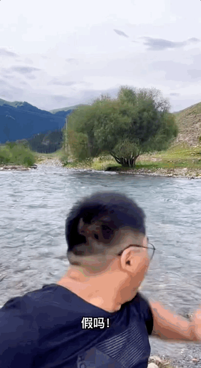 這個叫@疆域阿力木 的主播也是個急脾氣,直接反手把手裏的水桶扔進小溪,伴隨着一聲怒吼——