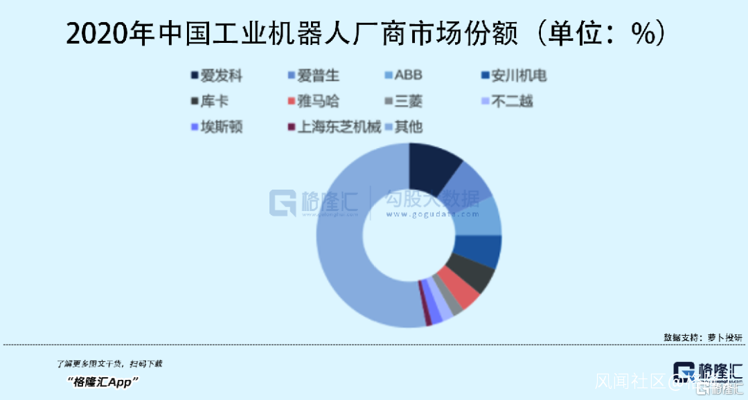 來看工業機器人的產業鏈,ABB、庫卡等為首的海外品牌拿捏着利潤較高的高端市場。