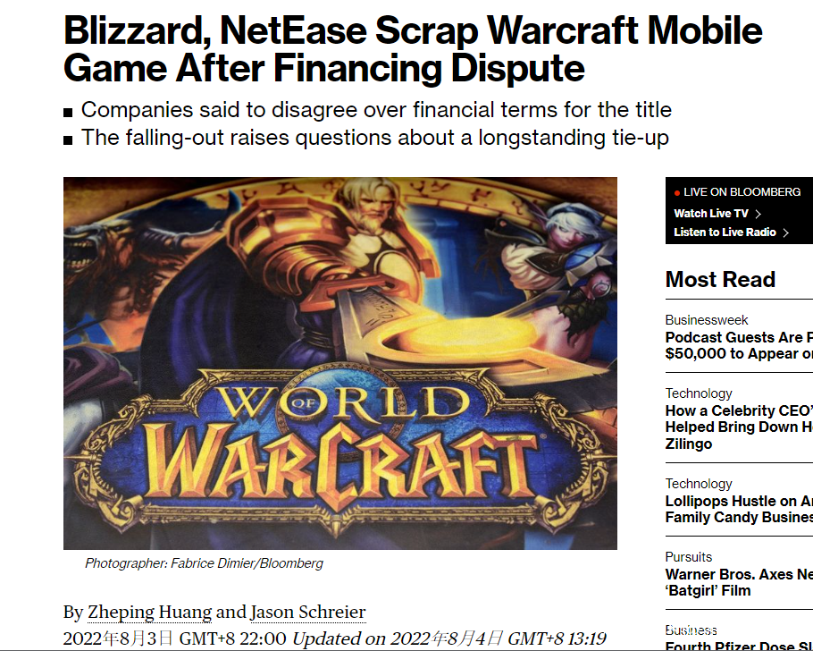 8月4日凌晨,據彭博社報道,動視暴雪近期取消了一款正在開發中的《魔獸世界》IP手遊項目,相關的開發團隊也已經解散完畢。
