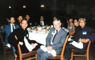 1982年9月在北京召開中美化學工程雙邊學術交流會。圖為中方主席侯虞鈞(前左)與美方主席、著名化工熱力學專家Prausitg教授(前中)在宴會