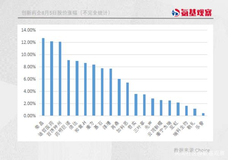 個股方面,如下圖所示,榮昌生物、迪哲醫藥、百濟神州、康方生物、基石藥業、再鼎醫藥等頭部創新藥企股價紛紛大漲。
