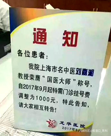 其實,廣東省中醫院的“國醫大師”禤國維(禤xuān),2017年的診查費調整為1000元。上海中醫藥大學附屬龍華醫院的“國醫大師”劉嘉湘教授自2017年9月起,特需門診掛號費調整為1000元。