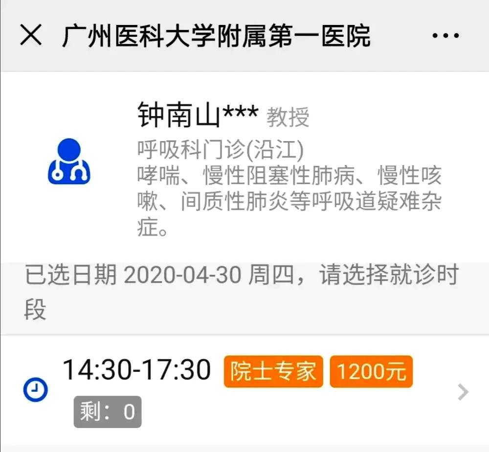 鍾南山院士1200元掛號費貴不貴?_風聞