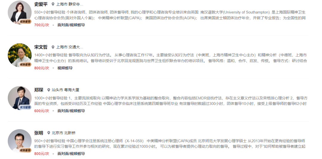 無論是入駐網上的心理諮詢平台,還是加入線下的心理諮詢機構,都要求入駐諮詢師有一定的諮詢小時數積累,一般需要100個小時以上。如果是相關專業學生,學校會不定期組織團體實操,比如北師大就有面向社會的免費心理諮詢活動,學生獲得實操積累,來訪者免費體驗服務。但門外漢顯然沒有這樣的機會,只能交錢上機構提供的其他課程,換取入駐資格。