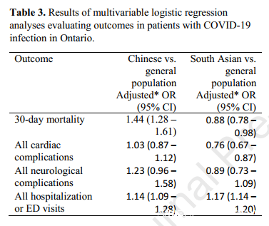 作為對比,新冠病毒對南亞裔還挺友好的,大部分指標都低於普通加拿大人。