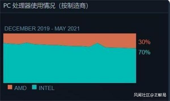 另一個可供觀察的視角是PC市場份額,AMD佔比持續增長至30%,達到了歷史最高點。