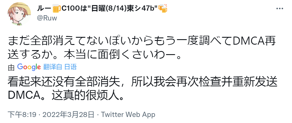 今年3月ZUN團隊的成員之一Ruw用DMCA(數字千年保護法)下架了大量盜版東方遊戲