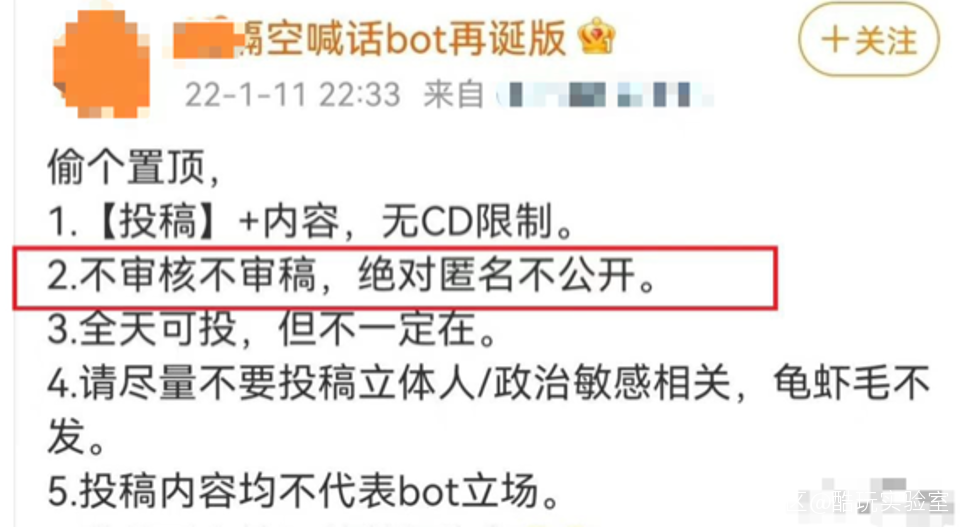 首先需要搞懂bot這個概念,這個詞截取自英文robot,即“機器人”,意為自動發佈,號主雖然是真人,但並不對內容進行篩選,只做搬運或發佈粉絲投稿。