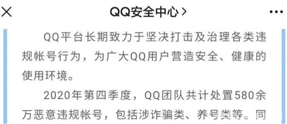 2021年初,騰訊宣佈關閉QQ的擴列功能。QQ安全中心發佈公告稱,僅2020年第四季度,就封禁了580萬餘違規的賬號。