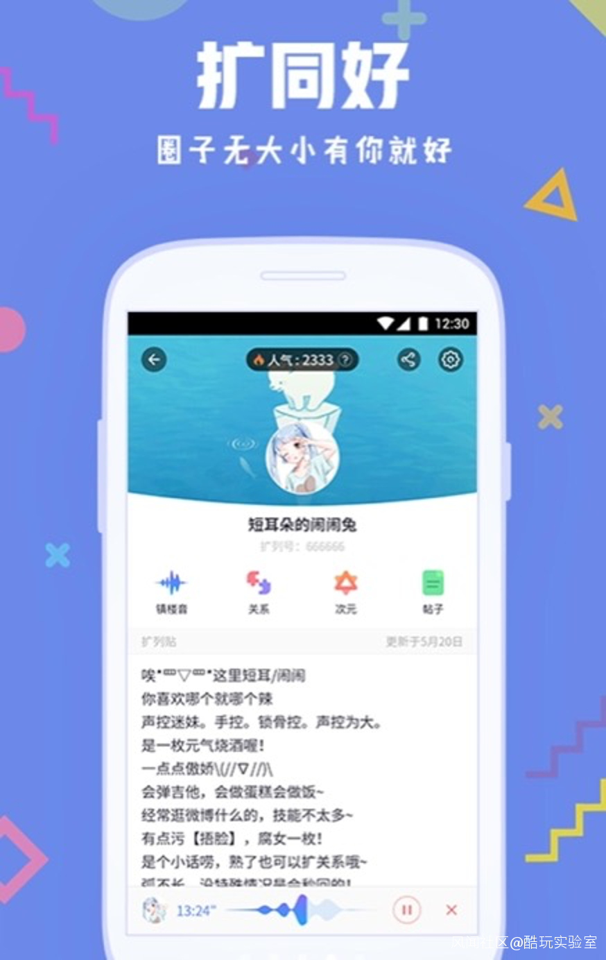 有創業公司以這個詞為名,開發了一款二次元社交平台,擴列APP。