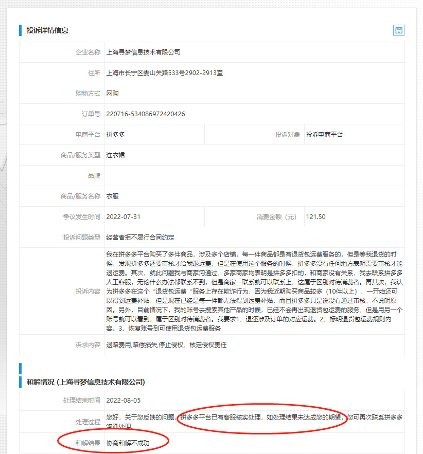 12315也是搞笑,説協商,我啥信息都沒有收到,電話,短信,郵件,信封?什麼都沒收到就和我説協商不成。一般投訴12315都有工商局或者某個相關部門電話來的。這個事情倒好,投訴拼多多,什麼電話都沒有,直接事件寫完成。而且我另外還有投訴一個質量問題也是拼多多的,也是直接完成,沒有任何人聯繫過我。真厲害,拼多多控制工商局了?