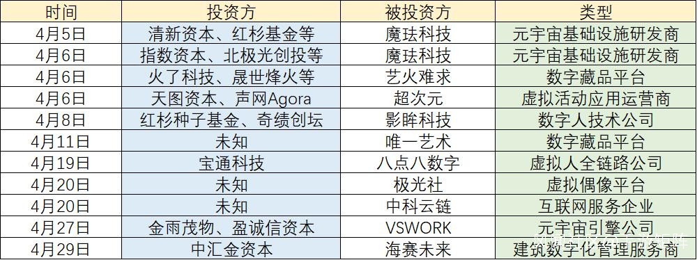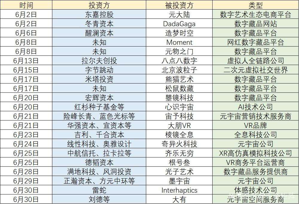 數字藏品、元宇宙領域的投資集中在 4 月和 6 月。