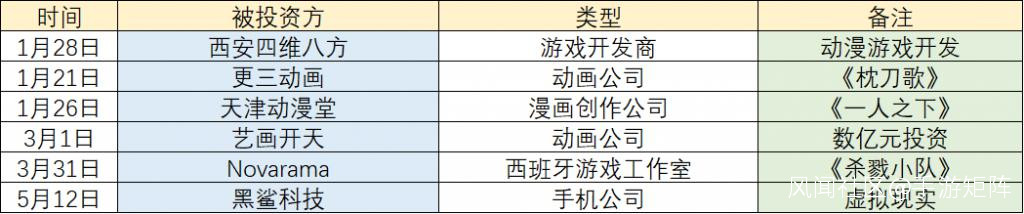 比起 2021 年 H1"3 天一家遊戲公司 " 的交易頻率,騰訊在今年上半年遊戲相關行業的投資要低調得多,收集到的 6 起投資中,還包括 3 起對動漫公司的投資。