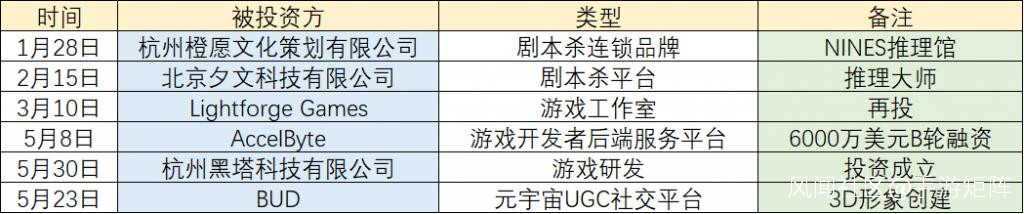 網易的 6 次投資主要集中在劇本殺平台和遊戲研發上。