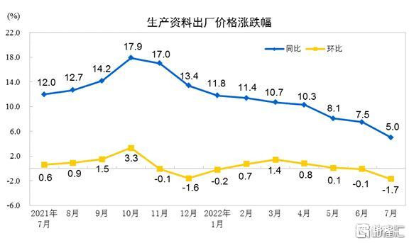 7月份,受國際國內等多因素影響,工業品價格整體下行,全國PPI環比由平轉降,同比漲幅繼續回落。