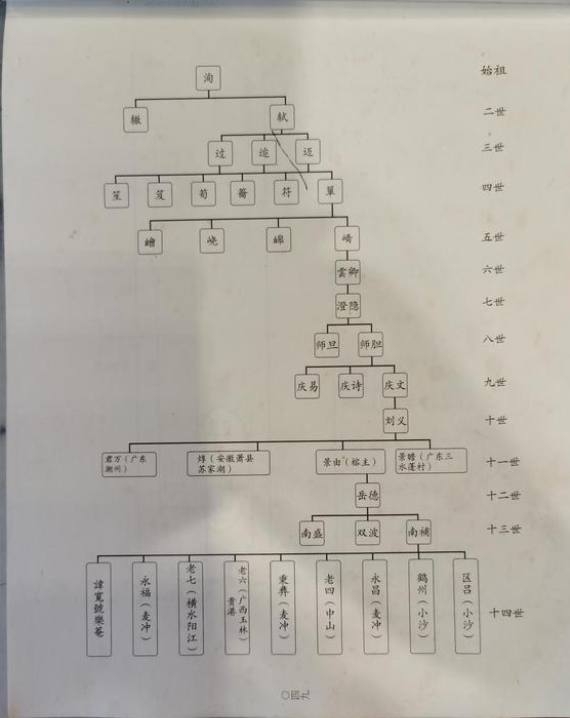 而從蘇根鴻提供的蘇氏族譜上可以看到,該族譜從始祖蘇洵一脈傳下,到十世時為蘇劉義,蘇劉義下分四脈,其中,蘇景由一脈往下傳到樂菴公一脈,蘇炳添、蘇炳全為第二十九代。