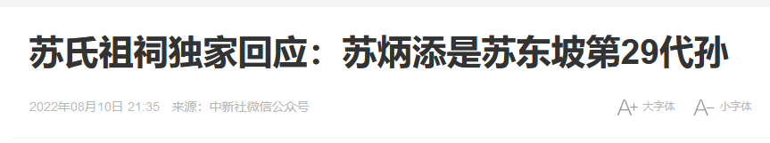 相關報道,原文鏈接:《蘇氏祖祠獨家回應:蘇炳添是蘇東坡第29代孫》