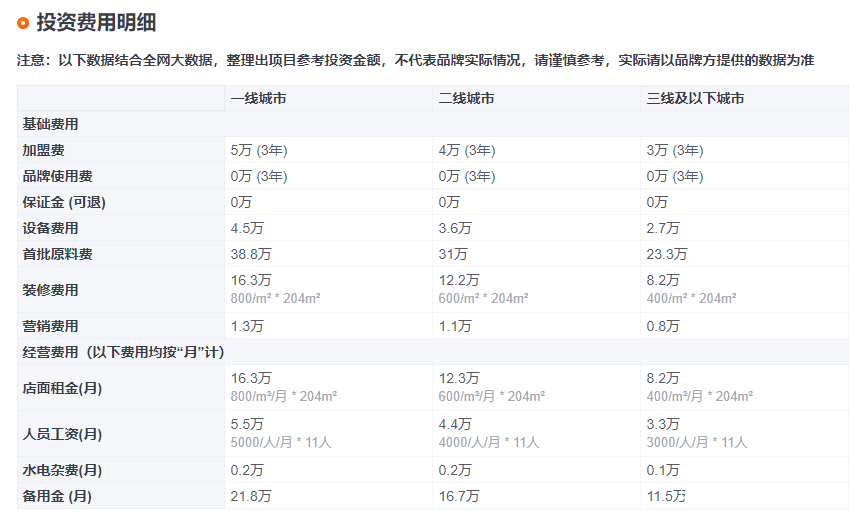 眼下,如林浩背後的外賣櫃加盟商,鋅刻度還在網絡上發現了不少同類型品牌。這些外賣櫃項目的投資金額大都在幾萬到十幾萬不等,加盟和服務方式也與前者類似。據林浩所説,他們原本是專門為外賣平台生產外賣櫃設備的廠商,察覺到有這樣的市場需求過後,才做起了第三方的加盟生意。