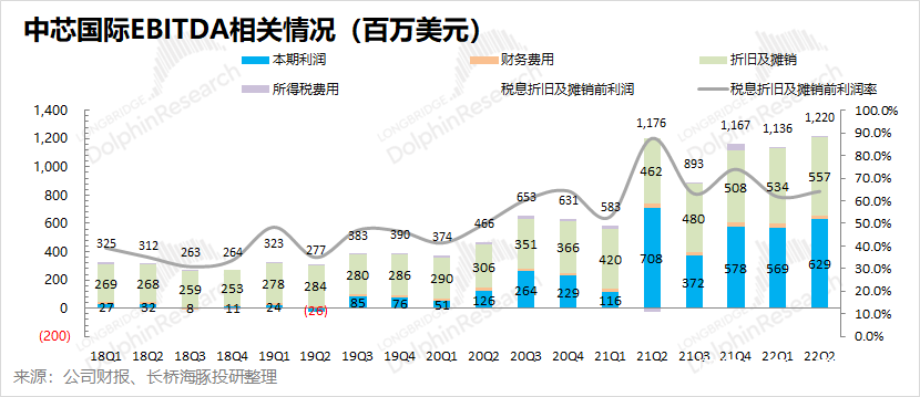 從EBITDA的角度看,二季度中芯國際税息折舊及攤銷前利潤達到12.20億美元,繼續維持高位。