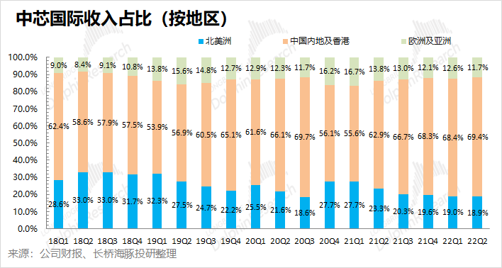 海豚君認為,隨着美國《芯片法案》等事件影響,為了保證自身的供應鏈安全,越來越多的國內廠商會優先選擇中芯國際等國內半導體產能。中國內地及香港地區客户,在中芯國際的收入份額將繼續提升。