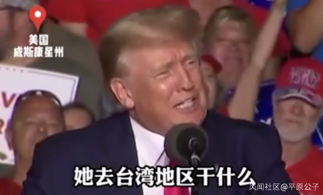 8月5日的一場集會演講中,特朗普大罵佩洛西是個瘋女人,説她竄台“助力了中國夢想”。