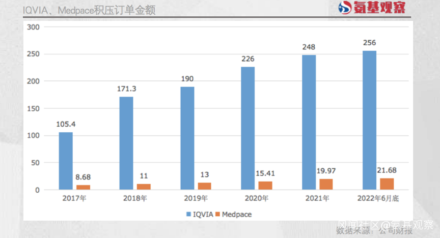 根據這一指標來看,上半年上到IQVIA,下到Medpace依然是“忙不過來”。如下圖所示,兩家公司的積壓訂單還在持續走高。