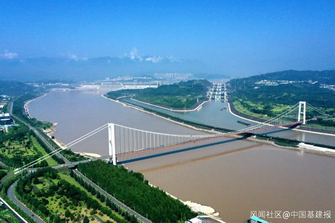 西陵長江大橋距離三峽大壩4.5公里,是長江上第一座大跨度鋼箱梁懸索橋,主跨900米,大橋兩邊的主纜像一根長鞦韆,分別吊着140根吊索,被譽為“神州第一跨”。作為三峽壩區左右岸交通的主要通道,西陵長江大橋平均每年過境通行車輛300餘萬輛。