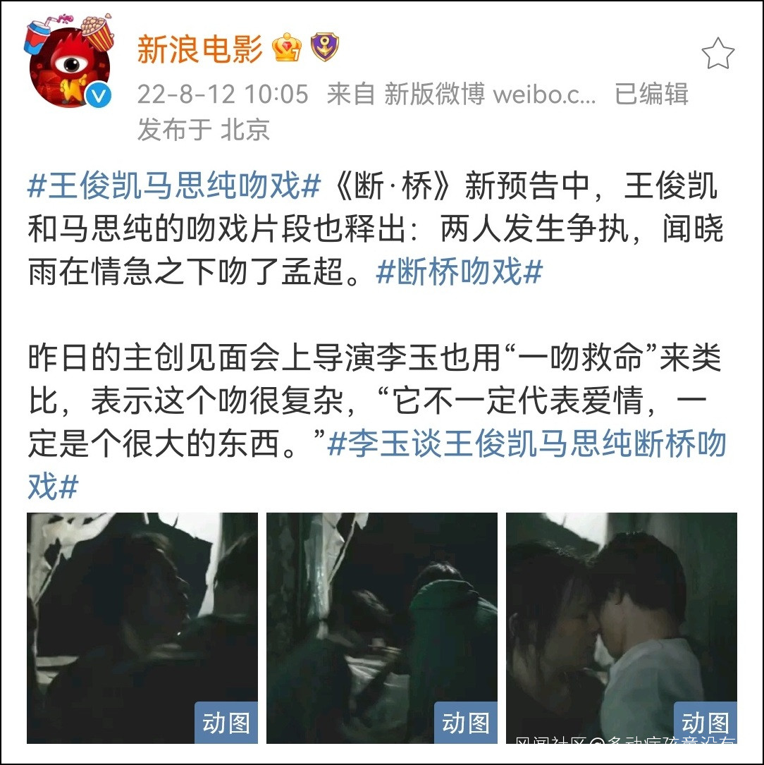 馬思純和王俊凱主演的電影《斷·橋》上映了。這部片子對於兩位主演來説都挺重要的:
