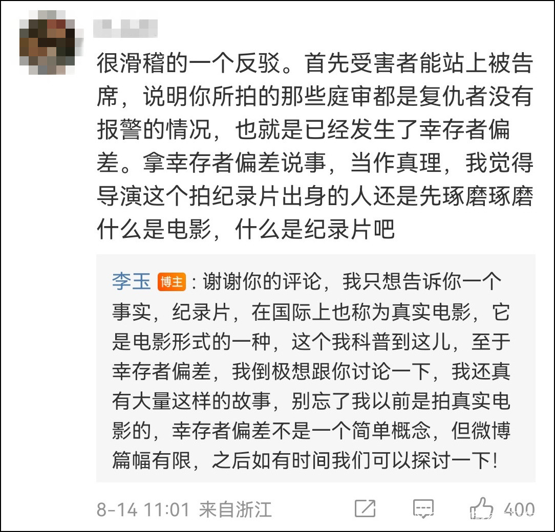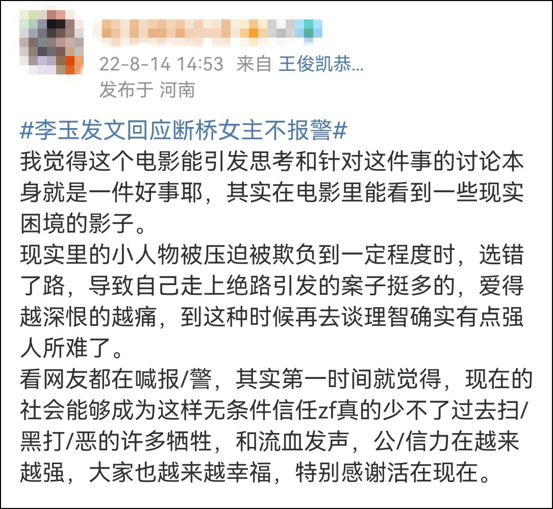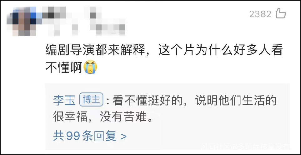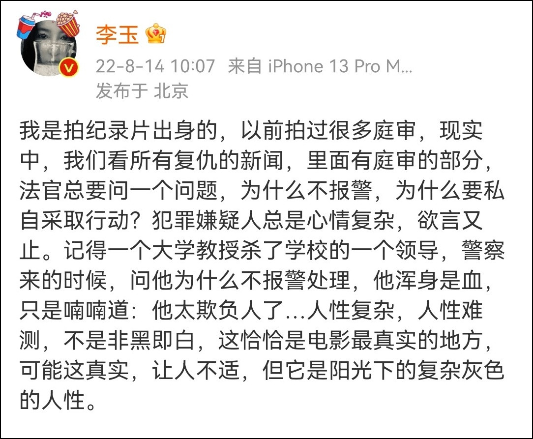 導演李玉在回覆網友稱“為什麼好多人看不懂”時還説了一句: