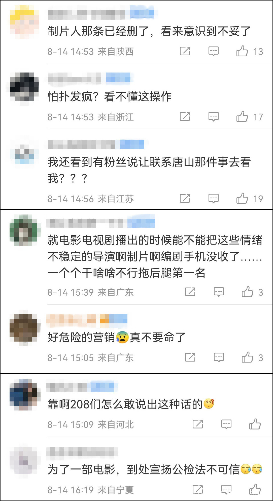 網友:好危險的營銷啊,建議把這些“情緒不穩定”的導演、編劇、製片的手機,都給沒收了。
