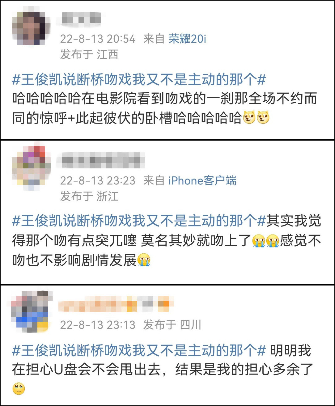 除了女主不報警是否合理的爭議外,馬思純和王俊凱在影片中的吻戲,用一些網友的話説,也很突兀。