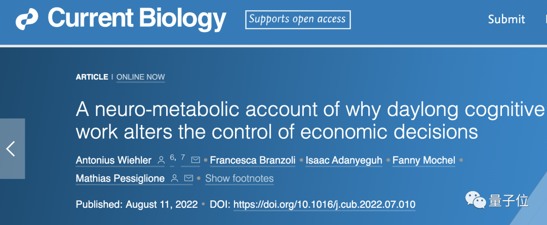 研究由一羣法國科學家完成,來自巴黎腦研究所、索邦大學等,論文發表在Cell子刊Current Biology上,Nature也撰文報道了此事。