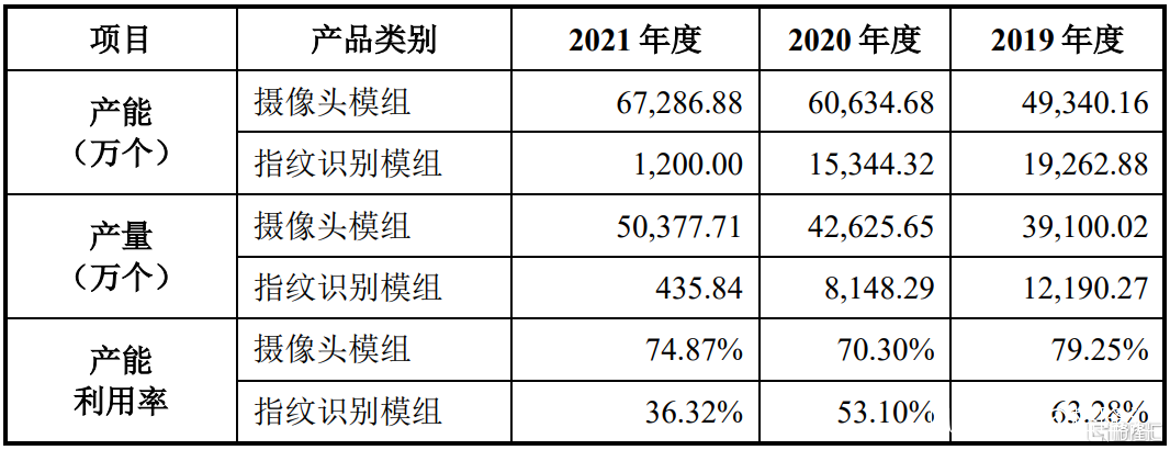 另一方面,報告期內公司的產能利用率下降,其中攝像頭模組產能利用率由2019年的79.25%波動降至2021年的74.87%,預計2022年還將進一步下滑,單位產品製造成本上升。值得注意的是,本次公司募投項目建成後,公司產能還將大幅提升,未來新增產能如何消化是個問題。