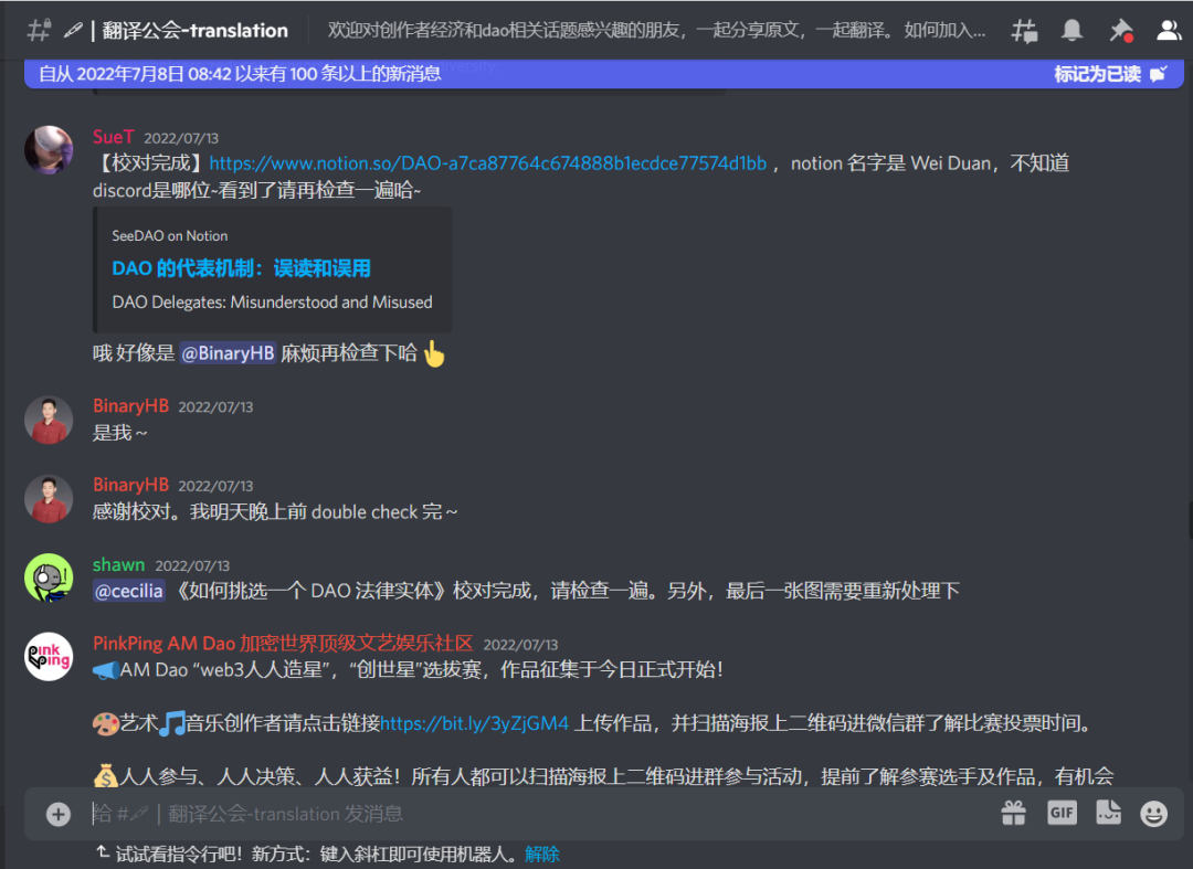翻譯公會是 SeeDAO 內的一個重要內容生產點,主要工作內容之一是翻譯海外優質 Web3 文章並在公眾號進行發佈,幫助更多人瞭解 Web3,同時通過內容輸出吸引更多人加入 SeeDAO。