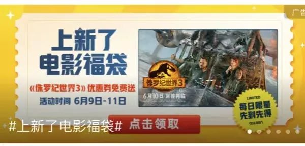 還有“上新了電影福袋”活動,會在電影預售期到熱映期為微博用户發放無門檻代金券福利。該福袋會通過微博私信的形式精準觸達用户,讓宣發曝光不流失。