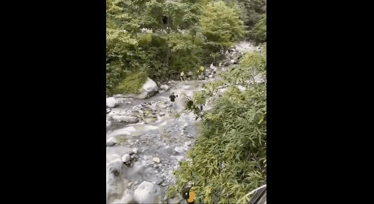 山洪暴發是什麼概念,見識過的當地人最清楚,他們立馬飛奔下山,通知河道上的遊客撤離。
