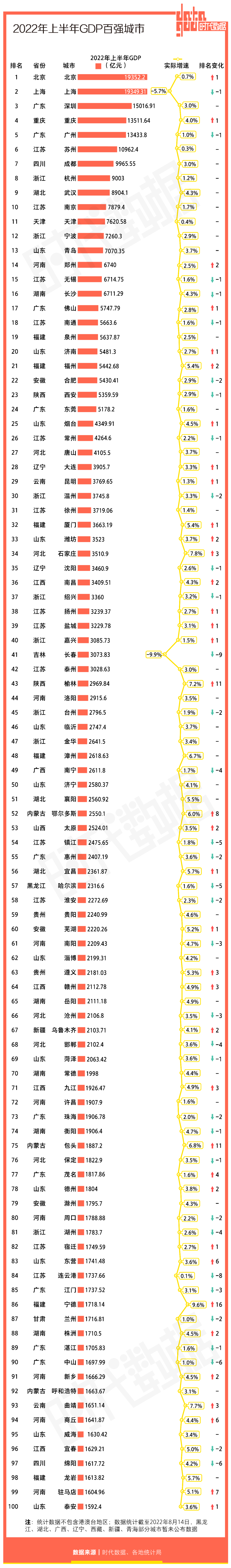 2022年上半年GDP百強城市更新:蘇魯粵35城領銜,甘肅7城增速亮眼_風聞