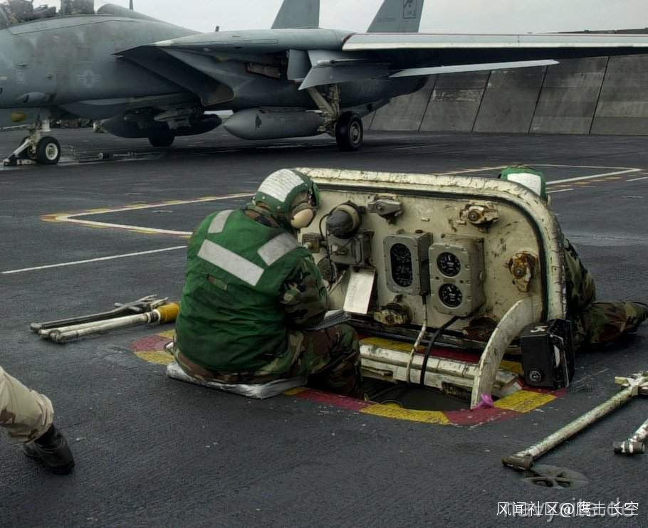 網傳的這張 J-15 彈射測試的圖片中,可以看到我國的陸地模擬裝置上也存在有 ICCS,可以想象“福建艦”肯定也有同樣的配置。