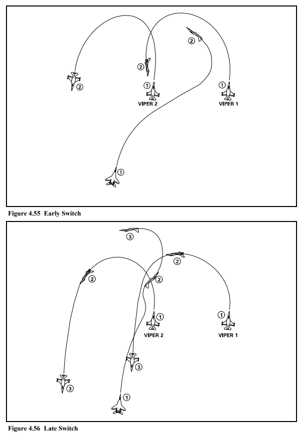 美國空軍相關戰術手冊關於在基礎空戰機動中雙機配合對抗具有主動權的假象敵機的示意
