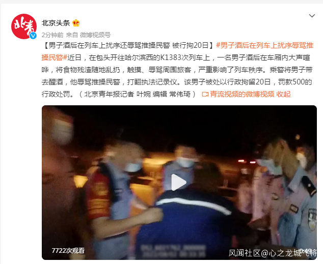 男子酒後在列車上擾序還辱罵推搡民警 被行拘20日來源:北京頭條
