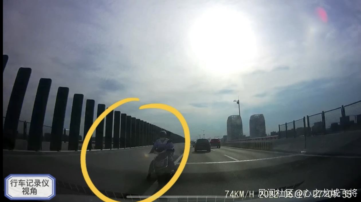 2022年6月27日7時許,青浦區崧澤高架南側G15瀋海高速路段處,一輛電動自行車在高架道路上由東向西逆向騎行,與高速行駛的機動車對向擦肩而過,險象環生。