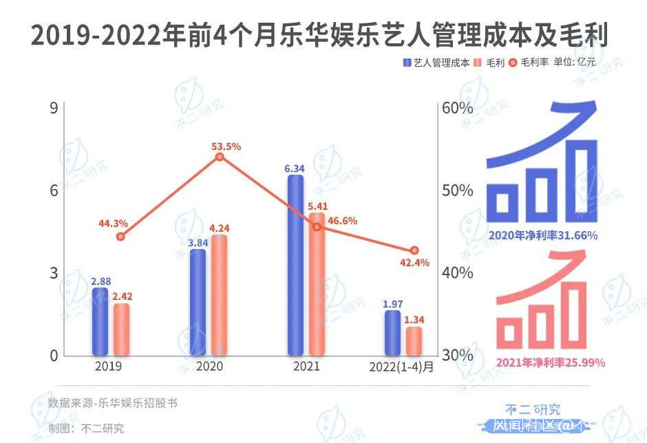 此外,據招股書顯示,2019-2021年及2022年前4個月,藝人管理的成本分別為2.88億、3.84億、6.34億和1.97億元,複合年增長率為33.43%和65.27%,2021年較2020年有所提高。