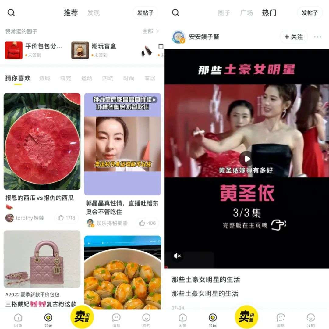 但8月上旬,閒魚突然大範圍整改了會玩版塊,將熱門欄(短視頻推薦流)砍掉,短視頻內容融入圖文內容,合併為推薦欄,原圈子欄則改為發現欄。這一大改動,説明閒魚已經發現,會玩版塊以往試圖以短視頻、圖文多線並行,以促進轉化的路徑效果有限。閒魚社區需要流量去中心化,即向小紅書看齊。