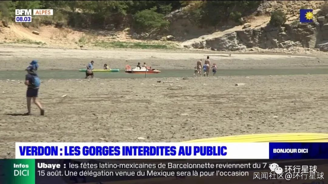 除了居家生活處處不便以外,外出遊玩的人也切身感受到乾旱的可怕。普羅旺斯阿爾卑斯山區有一個韋爾登峽谷(Les gorges du Verdon),是歐洲最大的峽谷,清澈溪流和湖水在夏日吸引眾多水上運動愛好者。