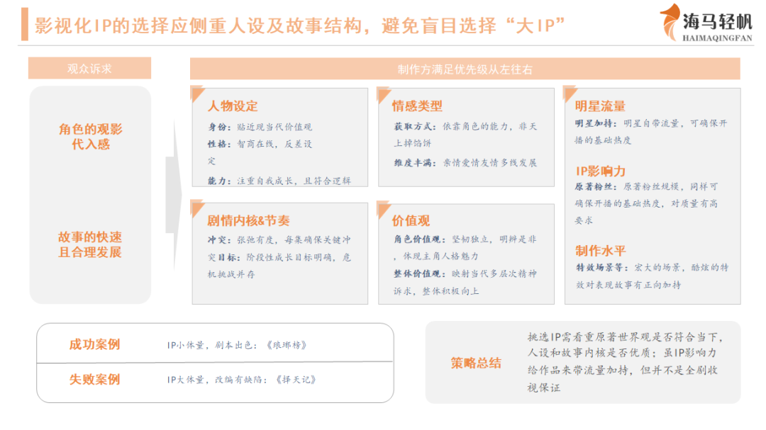 強有力的統籌者角色往往由大平台充當,可遇不可求。不過,海馬輕帆願意嘗試做那個第三方。劉笑逸認為,她們評估IP的優勢在於,是由機器基於故事模型——也就是內容規律、結合市場上的公開數據進行評估,減少人的參與,在中立方面更具誠意。