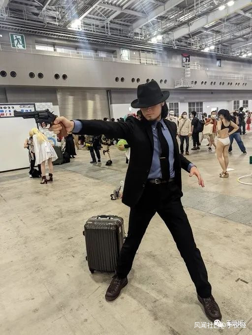 下面這名角色是經典動畫《魯邦三世》的主要角色次元大介,模仿的很形象。次元大介的聲優在前五季都是小林清志,老爺子在不久前去世了,享年89歲。