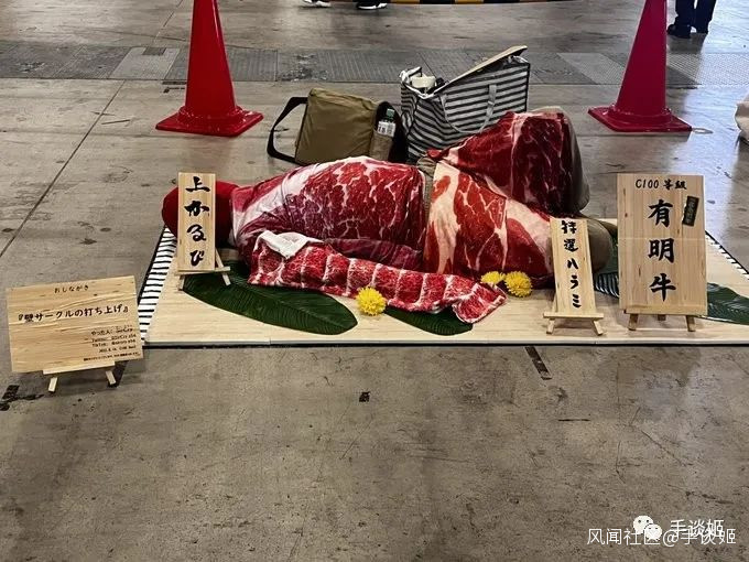 如果比較懶洋洋,想躺平,搭配場內空調的話,下面這位好像還挺輕鬆。他cos的是烤肉用的牛肉,只需要在地上躺平就能達成效果,令人垂涎。